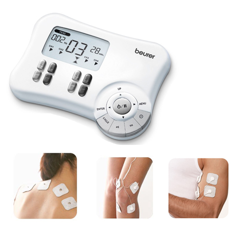 شرکت بیورر (Beurer) آلمان دستگاه تحریک الکتریکی ماهیچه مدل EM 80 را طراحی کرده که از طریق الکترودهای ژله ای باعث گردش خون و رفع گرفتگی و حتی ماساژ میشود. عملکرد دستگاه EM 80 تحریک ماهیچه همان تکرار ضربان الکتریکی بدن از طریق الکترودها است که از طریق پوست به اعصاب و بافت ماهیچه می رسد. الکترودها را می توانید به هر قسمت از بدن متصل نمایید. تحریک الکتریکی بدون درد و بی ضرر است فقط کمی احساس لرزش خفیف یا مور مور خواهید داشت. ضربان الکتریکی که به بافت فرستاده می شود بر انتقال تحریک الکتریکی به داخل عصبها، مراکز عصب و گروه ماهیچه ها تاثیر می گذارد.